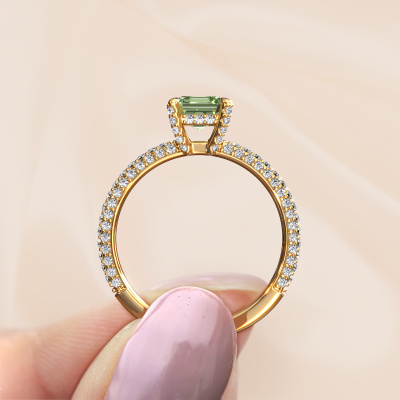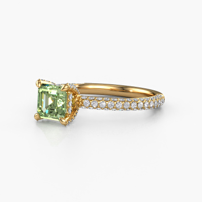 This 14 Carat gold ring is called Saskia 2 ASH and is set with 5.5 mm green lab grown diamond. This exclusive gold pavé solitaire engagement ring is a true work of art! The ornaments are crafted with a lot of patience and great passion. In order to create this ring with great precision, this craft requires a keen eye and skilful hand. A challenge which ignites a fire in our expert goldsmith. The exquisite green lab grown diamonds are set in a special way so they stand out even more. This gives the ring an even more glamorous appearance. The pretty engagement ring is actually unique on its own because of the gemstones which we carefully select especially for this ring. On top of that you select the precious metals which will be used to create a unique ring for the most extraordinary woman in your life! This jewel is made just for you by our master goldsmiths in our own studio.Are you on a budget? Please feel free to contact us, so we can go discuss your options. We offer our engagement rings at guaranteed best price, because we make them to order. You won't find such a price anywhere else!Our team adds new designs to our online collection daily. Our designers and goldsmiths work together in creating the best design. We strive to offer a diverse collection of jewels. Perhaps you have a specific jewel design in mind. One you came across somewhere. Please contact us for a free consultation. We will make you an offer, based on a fair price/ quality ratio, that will baffle you.To make it easier for you, we offer a 30 day return policy. Check our terms and conditions.