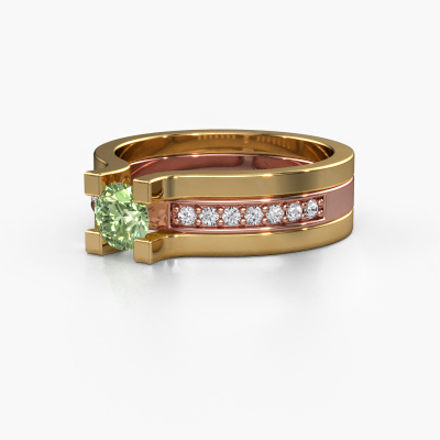This 14 Carat rose gold ring is called Myrthe and is set with 5 mm green lab grown diamond. This exclusive rose gold pavé solitaire engagement ring is a true work of art! The ornaments are crafted with a lot of patience and great passion. In order to create this ring with great precision, this craft requires a keen eye and skilful hand. A challenge which ignites a fire in our expert goldsmith. The exquisite green lab grown diamonds are set in a special way so they stand out even more. This gives the ring an even more glamorous appearance. The graceful engagement ring is actually unique on its own because of the gemstones which we carefully select especially for this ring. On top of that you select the precious metals which will be used to create a unique ring for the most extraordinary woman in your life! This jewel is made just for you, with attention to detail and design.After receiving your order, our goldsmiths will start the creative process of making your Myrthe engagement ring. We don't keep stock. This is advantageous because these costs will not be passed on to you. Therefore, we can offer jewellery at exceptionally low prices.Our designers and goldsmiths work together each day, creating new jewels. Perhaps you have found a nice modern engagement ring somewhere, which can be used to customize your unique ring. Please feel free to contact us. We will make you an offer, based on a fair price/ quality ratio, which will amaze you.To make it easier for you, we offer a 30 day return policy. Check our terms and conditions.