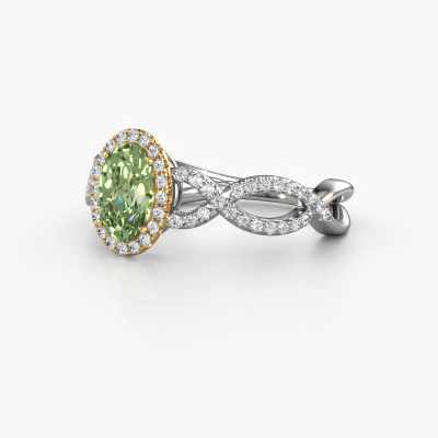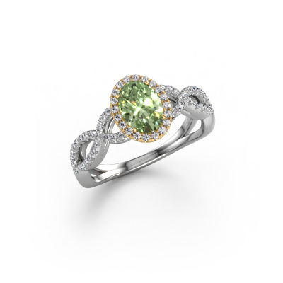 This 14 Carat white gold ring is called Dionne ovl and is set with 7x5 mm green lab grown diamond. This exclusive white gold pavé solitaire engagement ring is a true work of art! The ornaments are crafted with a lot of patience and great passion. In order to create this ring with great precision, this craft requires a keen eye and skilful hand. A challenge which ignites a fire in our expert goldsmith. The exquisite green lab grown diamonds are set in a special way so they stand out even more. This gives the ring an even more glamorous appearance. The twisted engagement ring is actually unique on its own because of the gemstones which we carefully select especially for this ring. On top of that you select the precious metals which will be used to create a unique ring for the most extraordinary woman in your life! This jewel is unique in every way! Simply customize to your likingAfter receiving your order, our goldsmiths will start the creative process of making your Dionne ovl engagement ring. We don't keep stock. This is advantageous because these costs will not be passed on to you. Therefore, we can offer jewellery at exceptionally low prices.Different styles of new rings are made daily by our team. Perhaps you have found a pavé solitaire engagement ring somewhere. One you would like to give to your loved one. Please feel free to share your thoughts and design with our jewel designers. We would love to turn your design into a exclusive engagement ring. You can follow the development of your ring design because we use very detailed 3D drawings. On top of that, you can order a dummy of the design. A dummy is a plastic ring, which can be shaped according your ring design. You can try it on and check if the engagement ring is up to standard. We will gladly send you a non-binding offer, based on a fair price/ quality ratio. The offer will baffle you, considering the quality of the ring and gemstones.To make it easier for you, we offer a 30 day return policy. Check our terms and conditions.