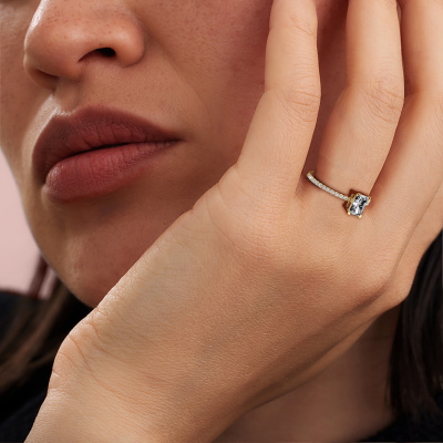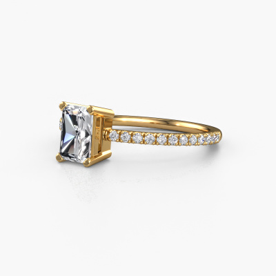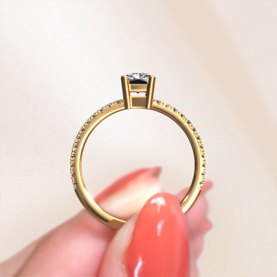 This 14 Carat gold ring is called Denita 2 RAD and is set with 0.930 crt lab grown diamond. This exclusive gold pavé solitaire engagement ring is a true work of art! The ornaments are crafted with a lot of patience and great passion. In order to create this ring with great precision, this craft requires a keen eye and skilful hand. A challenge which ignites a fire in our expert goldsmith. The exquisite lab-grown diamonds are set in a special way so they stand out even more. This gives the ring an even more glamorous appearance. The micro pave engagement ring is actually unique on its own because of the gemstones which we carefully select especially for this ring. On top of that you select the precious metals which will be used to create a unique ring for the most extraordinary woman in your life! This jewel is made with passion and love by one of our master goldsmiths.After receiving your order, our goldsmiths will passionately start the creative process of making your engagement ring in our own studio. Because we don't have a big stockpile, these costs will not be passed on to you. Our pricing is proof of that! We offer top quality jewels at lowest price, guaranteed.Do you have a specific ring in mind? One you came across somewhere. Please feel free to tell us your wishes and we will turn your design into a unique engagement ring. You can follow the development of your ring design because we use 3D drawings. This gives you a realistic preview of your design. We will gladly send you a non-binding offer, based on a fair price/ quality ratio. It will amaze you.To make it easier for you, we offer a 30 day return policy. Check our terms and conditions.
