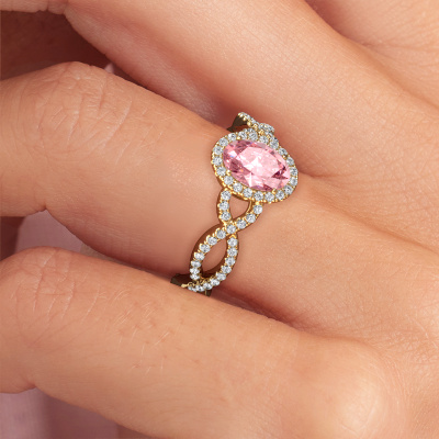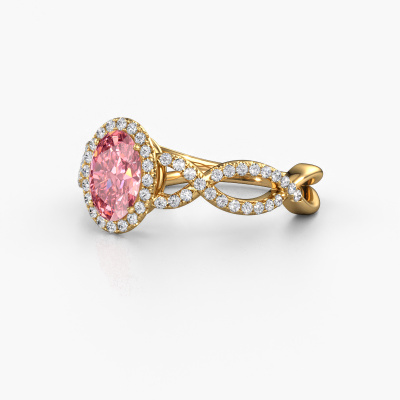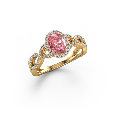 This 14 Carat gold ring is called Dionne ovl and is set with 7x5 mm pink lab grown diamond. This exclusive gold pavé solitaire engagement ring is a true work of art! The ornaments are crafted with a lot of patience and great passion. In order to create this ring with great precision, this craft requires a keen eye and skilful hand. A challenge which ignites a fire in our expert goldsmith. The exquisite pink lab grown diamonds are set in a special way so they stand out even more. This gives the ring an even more glamorous appearance. The twisted engagement ring is actually unique on its own because of the gemstones which we carefully select especially for this ring. On top of that you select the precious metals which will be used to create a unique ring for the most extraordinary woman in your life! This jewel is unique in every way! Simply customize to your likingAfter receiving your order, our goldsmiths will start the creative process of making your Dionne ovl engagement ring. We don't keep stock. This is advantageous because these costs will not be passed on to you. Therefore, we can offer jewellery at exceptionally low prices.Different styles of new rings are made daily by our team. Perhaps you have found a pavé solitaire engagement ring somewhere. One you would like to give to your loved one. Please feel free to share your thoughts and design with our jewel designers. We would love to turn your design into a exclusive engagement ring. You can follow the development of your ring design because we use very detailed 3D drawings. On top of that, you can order a dummy of the design. A dummy is a plastic ring, which can be shaped according your ring design. You can try it on and check if the engagement ring is up to standard. We will gladly send you a non-binding offer, based on a fair price/ quality ratio. The offer will baffle you, considering the quality of the ring and gemstones.To make it easier for you, we offer a 30 day return policy. Check our terms and conditions.