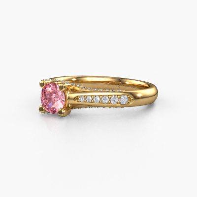 This 14 Carat gold ring is called Mia 3 and is set with 5 mm pink lab grown diamond. This exclusive gold pavé solitaire engagement ring is a true work of art! The ornaments are crafted with a lot of patience and great passion. In order to create this ring with great precision, this craft requires a keen eye and skilful hand. A challenge which ignites a fire in our expert goldsmith. The exquisite pink lab grown diamonds are set in a special way so they stand out even more. This gives the ring an even more glamorous appearance. The shiny engagement ring is actually unique on its own because of the gemstones which we carefully select especially for this ring. On top of that you select the precious metals which will be used to create a unique ring for the most extraordinary woman in your life! This jewel is unique in every way! Simply customize to your likingAre you on a budget? Please feel free to contact us, so we can go discuss your options. We offer our engagement rings at guaranteed best price, because we make them to order. You won't find such a price anywhere else!Our team adds new designs to our online collection daily. Our designers and goldsmiths work together in creating the best design. We strive to offer a diverse collection of jewels. Perhaps you have a specific jewel design in mind. One you came across somewhere. Please contact us for a free consultation. We will make you an offer, based on a fair price/ quality ratio, that will baffle you.To make it easier for you, we offer a 30 day return policy. Check our terms and conditions.
