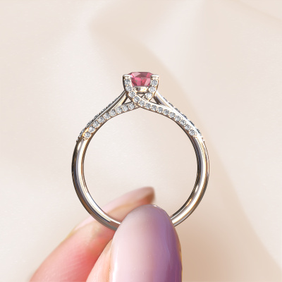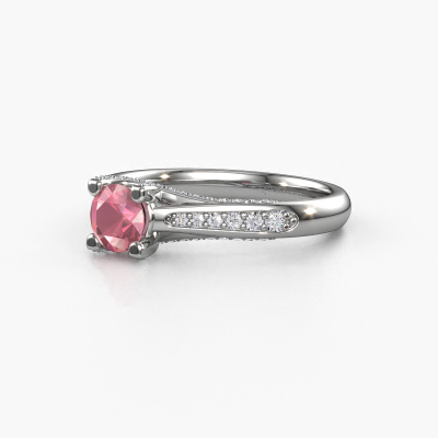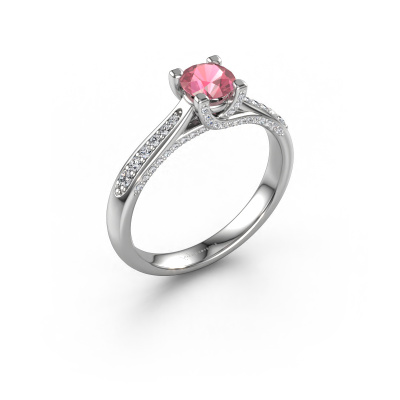 This 14 Carat white gold ring is called Mia 3 and is set with 5 mm tourmaline pink. This exclusive white gold pavé solitaire engagement ring is a true work of art! The ornaments are crafted with a lot of patience and great passion. In order to create this ring with great precision, this craft requires a keen eye and skilful hand. A challenge which ignites a fire in our expert goldsmith. The exquisite tourmaline pink are set in a special way so they stand out even more. This gives the ring an even more glamorous appearance. The shiny engagement ring is actually unique on its own because of the gemstones which we carefully select especially for this ring. On top of that you select the precious metals which will be used to create a unique ring for the most extraordinary woman in your life! This jewel is unique in every way! Simply customize to your likingAre you on a budget? Please feel free to contact us, so we can go discuss your options. We offer our engagement rings at guaranteed best price, because we make them to order. You won't find such a price anywhere else!Our team adds new designs to our online collection daily. Our designers and goldsmiths work together in creating the best design. We strive to offer a diverse collection of jewels. Perhaps you have a specific jewel design in mind. One you came across somewhere. Please contact us for a free consultation. We will make you an offer, based on a fair price/ quality ratio, that will baffle you.To make it easier for you, we offer a 30 day return policy. Check our terms and conditions.
