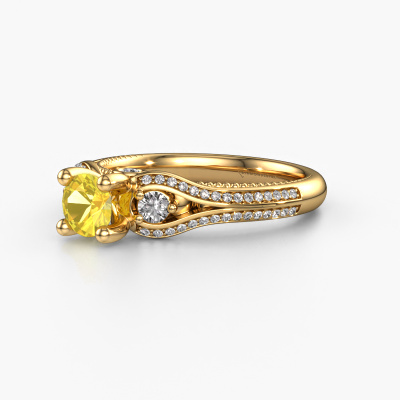 This 14 Carat gold ring is called Nikita and is set with 5 mm yellow sapphire. An extraordinary gold vintage ring. One that will surely make the love of your life shine like a diamond! That is what we hope to achieve. This vintage engagement ring is set with exquisite yellow sapphire. Whichever gemstone you choose from our selection, is up to you. The gemstone is selected with great care because we believe your tasteful engagement ring must be adorned with nothing but the most beautiful gemstone. Wouldn't you agree? Our expert goldsmith will design your ring in our own crafting studio, where the yellow sapphire will be set with great precision. The ring will then be polished till it shines perfectly. Nothing but the best for the love of your life! This jewel is made just for you by our master goldsmiths in our own studio.After receiving your order, our goldsmiths will start the creative process of making your Nikita engagement ring. We don't keep stock. This is advantageous because these costs will not be passed on to you. Therefore, we can offer jewellery at exceptionally low prices.Do you have a specific ring in mind? One you came across somewhere. Please feel free to tell us your wishes and we will turn your design into a unique engagement ring. You can follow the development of your ring design because we use 3D drawings. This gives you a realistic preview of your design. We will gladly send you a non-binding offer, based on a fair price/ quality ratio. It will amaze you.To make it easier for you, we offer a 30 day return policy. Check our terms and conditions.