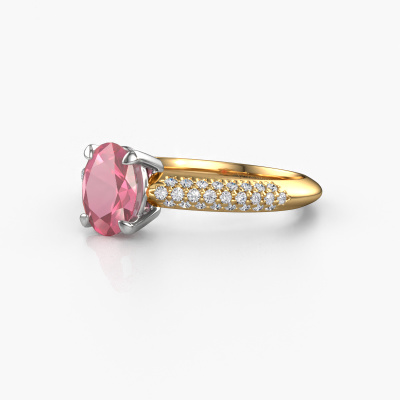 The ring shown above is called Morane OVL. We call this a pave ring. The smaller gemstones of pave ring are set in a close row which gives it an extra shine. This 14 Carat gold ring is set with tourmaline pink 7,5x5,5 mm. The ring shown above is called Morane OVL. We call this a pave ring. The smaller gemstones of pave ring are set in a close row which gives it an extra shine. Which emotion would you like to convey when you get down on one knee for her? This gold engagement ring is pave set with stunning tourmaline pink to represent your everlasting love. The gemstones are carefully hand selected and set by our goldsmith. The unique reflection of light on the ring can only be captured if the tourmaline pink are set in a perfect line. During the crafting and polishing of the jewellery, light fall is constantly monitored, until the expert goldsmith is satisfied with the result. A ring designed just for you to make your loved one shine bright like a diamond. Because there is only one special person fit to wear such a unique ring! With this meaningful piece of art, the symbol of infinity, you will prove your undying love for her and that you want to share the rest of your life with no one else. How will she be able to resist? This piece of jewellery is created to add sparkle to your finger, each jewel is lovingly made by hand by our goldsmiths.By using our modern techniques, we can design and customize the finest quality jewels with the utmost care for you. Our engagement rings are always priced 30 percent lower than other jewellers. We make engagement rings to order so we don't have to maintain a large stock. If you have a certain budget, we are more than happy to advice you accordingly.Our designers and goldsmiths work together each day, creating new jewels. Perhaps you have found a nice modern engagement ring somewhere, which can be used to customize your unique ring. Please feel free to contact us. We will make you an offer, based on a fair price/ quality ratio, which will amaze you.To make it easier for you, we offer a 30 day return policy. Check our terms and conditions.