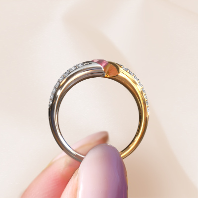 The ring shown above is called Hojalien 3. We call this a pave ring. The smaller gemstones of pave ring are set in a close row which gives it an extra shine. This 14 Carat white gold ring is set with tourmaline pink 4.2 mm. The ring shown above is called Hojalien 3. We call this a pave ring. The smaller gemstones of pave ring are set in a close row which gives it an extra shine. Which emotion would you like to convey when you get down on one knee for her? This white gold engagement ring is pave set with stunning tourmaline pink to represent your everlasting love. The gemstones are carefully hand selected and set by our goldsmith. The unique reflection of light on the ring can only be captured if the tourmaline pink are set in a perfect line. During the crafting and polishing of the jewellery, light fall is constantly monitored, until the expert goldsmith is satisfied with the result. A ring designed just for you to make your loved one shine bright like a diamond. Because there is only one special person fit to wear such a unique ring! With this meaningful piece of art, the symbol of infinity, you will prove your undying love for her and that you want to share the rest of your life with no one else. How will she be able to resist? This piece of jewellery is made to shine bright around your finger. Each jewel is hand made with love by our goldsmiths.Are you on a budget? Please feel free to contact us, so we can go discuss your options. We offer our engagement rings at guaranteed best price, because we make them to order. You won't find such a price anywhere else!Our team adds new designs to our online collection daily. Our designers and goldsmiths work together in creating the best design. We strive to offer a diverse collection of jewels. Perhaps you have a specific jewel design in mind. One you came across somewhere. Please contact us for a free consultation. We will make you an offer, based on a fair price/ quality ratio, that will baffle you.To make it easier for you, we offer a 30 day return policy. Check our terms and conditions.