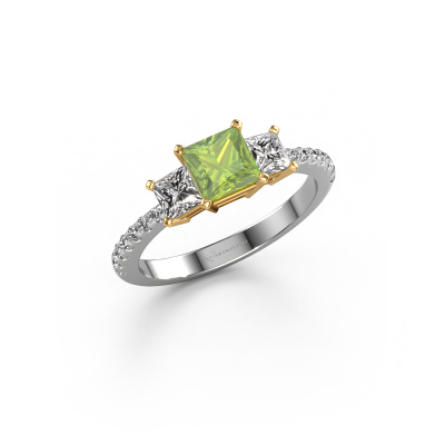This 14 Carat white gold ring is called Dorla and is set with 5 mm peridot. What is it that makes your relationship unique? What is it about her that makes you want to bend down on one knee? The unique bond between the two of you is emphasized by an equally unique ring. A one of a kind micro pave 3-stone engagement ring made especially for her. That is why this exclusive ring fits her like a glove. Each specific detail of this micro pave white gold peridot set engagement ring is hand-picked, crafted and polished by our expert goldsmith. The result is an exquisite ring, unique and perfectly crafted to perfection. That is what our expert Goldsmiths strive for. This jewel is unique in every way! Simply customize to your liking,After receiving your order, our goldsmiths will passionately start the creative process of making your engagement ring in our own studio. Because we don't have a big stockpile, these costs will not be passed on to you. Our pricing is proof of that! We offer top quality jewels at lowest price, guaranteed.Do you have a specific ring in mind? One you came across somewhere. Please feel free to tell us your wishes and we will turn your design into a unique engagement ring. You can follow the development of your ring design because we use 3D drawings. This gives you a realistic preview of your design. We will gladly send you a non-binding offer, based on a fair price/ quality ratio. It will amaze you.To make it easier for you, we offer a 30 day return policy. Check our terms and conditions.