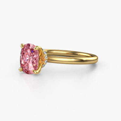 The ring shown above is called the Crystal CSH 3, we call this a solitaire ring because it contains a single gemstone. The engagement ring is made in 14 Carat gold and has a cushion rectangle pink lab grown diamond of 8.7x6.6 mm. The cool thing about our configurator is that you can compile your own piece of jewellery, into a completely personalized one. This solitaire ring is crafted in the precious metals gold with gold, but of course you are free to pick your own colours. Each piece of jewellery is created to add sparkle to your finger, each jewel is lovingly made by hand by our goldsmiths.The solitaire ring is a special type of engagement ring. Its open prong setting allows light to strike the gemstone from various angles. This exclusive engagement ring is a stunning eye-catcher because of the high positioning of the gemstone. In order for you to commemorate your proposal with a unique ring, we carefully adorn this solitaire ring by hand. The love of your life deserves nothing but the best. After receiving your order, our goldsmiths will start the creative process of making your Crystal CSH 3 engagement ring. We don't keep stock. This is advantageous because these costs will not be passed on to you. Therefore, we can offer jewellery at exceptionally low prices.Have you found a specific engagement ring somewhere which you would like to give to your loved one? Please feel free to express your wishes to our jewel designers because we would be honoured to turn your design into a exclusive engagement ring. You can follow the development of your ring design because we use 3D drawings. This gives you a realistic preview of how your design will look. You can also preorder a dummy. A dummy is a plastic ring, which can be shaped according your ring design. You can try it on and check if its width and size are suitable for you. We will gladly send you a non-binding offer, based on a fair price/ quality ratio. It will amaze you, considering the quality of the ring and gemstones.To make it easier for you, we offer a 30 day return policy. Check our terms and conditions.