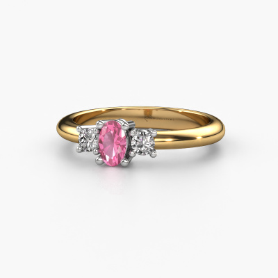 This 14 Carat gold ring is called Karie and is set with pink sapphire. How would you describe the style of the love of your life? Does she have a unique sense of style? This stunning ajour gold engagement ring can be custom-made to your own or her liking. Our pink sapphire gemstones have been carefully selected because we believe your traditional engagement ring must be adorned with nothing but the most beautiful gemstone. Don't you agree? This jewel is made just for you by our master goldsmiths in our own studio.After receiving your order, our goldsmiths will passionately start the creative process of making your engagement ring in our own studio. Because we don't have a big stockpile, these costs will not be passed on to you. Our pricing is proof of that! We offer top quality jewels at lowest price, guaranteed.Do you have a specific ring in mind? One you came across somewhere. Please feel free to tell us your wishes and we will turn your design into a unique engagement ring. You can follow the development of your ring design because we use 3D drawings. This gives you a realistic preview of your design. We will gladly send you a non-binding offer, based on a fair price/ quality ratio. It will amaze you.To make it easier for you, we offer a 30 day return policy. Check our terms and conditions.