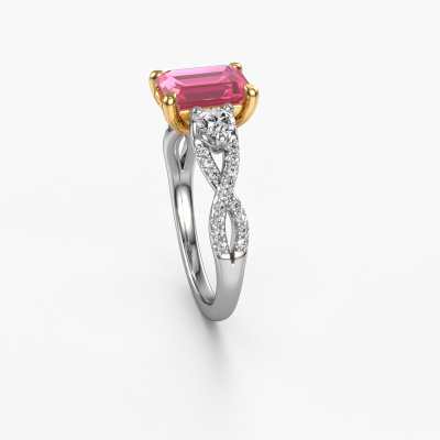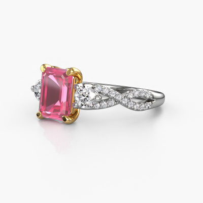This 14 Carat white gold ring is called Marilou EME and is set with pink sapphire. How would you describe the style of the love of your life? Does she have a unique sense of style? This stunning split band white gold engagement ring can be custom-made to your own or her liking. Our pink sapphire gemstones have been carefully selected because we believe your luxury engagement ring must be adorned with nothing but the most beautiful gemstone. Don't you agree? This jewel is made to shine bright around your finger. Each jewel is hand made with love by our goldsmiths.After receiving your order, our goldsmiths will start the creative process of making your Marilou EME engagement ring. We don't keep stock. This is advantageous because these costs will not be passed on to you. Therefore, we can offer jewellery at exceptionally low prices.Do you have a specific ring in mind? One you came across somewhere. Please feel free to tell us your wishes and we will turn your design into a unique engagement ring. You can follow the development of your ring design because we use 3D drawings. This gives you a realistic preview of your design. We will gladly send you a non-binding offer, based on a fair price/ quality ratio. It will amaze you.To make it easier for you, we offer a 30 day return policy. Check our terms and conditions.
