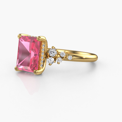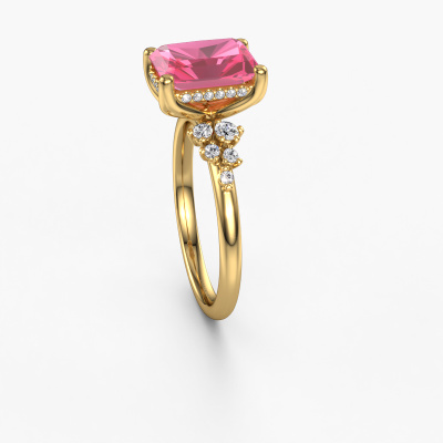 This 14 Carat gold ring is called Emma RAD and is set with 9x7 mm pink sapphire. What is it that makes your relationship unique? What is it about her that makes you want to bend down on one knee? The unique bond between the two of you is emphasized by an equally unique ring. A one of a kind stylish pavé solitaire engagement ring made especially for her. That is why this exclusive ring fits her like a glove. Each specific detail of this stylish gold pink sapphire set engagement ring is hand-picked, crafted and polished by our expert goldsmith. The result is an exquisite ring, unique and perfectly crafted to perfection. That is what our expert Goldsmiths strive for. This jewel is made by a team of passionate goldsmiths and jewel designers. This will make your crown jewel truly eye-catching.Because we design and deliver our own rings, we can offer you a engagement ring at a price you won't find anywhere else. A ring is made to order, which helps prevent excess supplies, so we can make you a great price offer. We understand it feels risky, buying your engagement ring online, but we will gladly assist in the designing process, taking your budget into consideration.Our designers and goldsmiths work together each day, creating new jewels. Perhaps you have found a nice exclusive engagement ring somewhere, which can be used to customize your unique ring. Please feel free to contact us. We will make you an offer, based on a fair price/ quality ratio, which will amaze you.To make it easier for you, we offer a 30 day return policy. Check our terms and conditions.