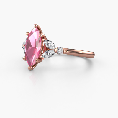 The ring shown above is called the Megan MRQ. We call this type of ring a pavé solitaire ring because it has one centre gemstone and a band that is also pave set with gemstones. This engagement ring is made in 14 Carat rose gold set with a 11x5.5 mm marquise pink sapphire, and pave set lab-grown diamonds at the sides. Each piece of jewellery is made with passion and love by one of our master goldsmiths.This fantasy rose gold pavé solitaire engagement ring has an exquisite marquise pink sapphire centre stone. To further accentuate the centre stone, the band is set full with more lab-grown diamonds. Its open prong setting allows light to strike the pink sapphire from various angles and this adds sparkle to your pink sapphire ring. The photo shown above depicts the goldsmith's carefully handcrafted details of the ring. The high positioning of the centre stone is truly eye-catching. The perfect engagement ring for the crown jewel of your life![bestp1v_long]Have you found a specific engagement ring somewhere which you would like to give to your loved one? Please feel free to express your wishes to our jewel designers because we would be honoured to turn your design into a fantasy engagement ring. You can follow the development of your ring design because we use 3D drawings. This gives you a realistic preview of how your design will look. You can also preorder a dummy. A dummy is a plastic ring, which can be shaped according your ring design. You can try it on and check if its width and size are suitable for you. We will gladly send you a non-binding offer, based on a fair price/ quality ratio. It will amaze you, considering the quality of the ring and gemstones.To make it easier for you, we offer a 30 day return policy. Check our terms and conditions.