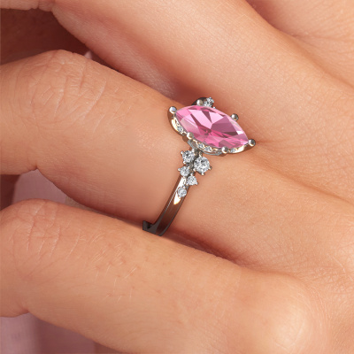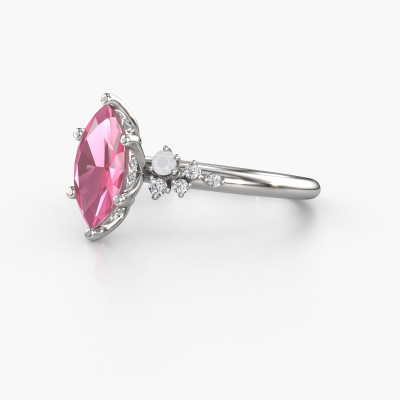 This 14 Carat white gold ring is called Emma MRQ and is set with pink sapphire. How would you describe the style of the love of your life? Does she have a unique sense of style? This stunning special white gold engagement ring can be custom-made to your own or her liking. Our pink sapphire gemstones have been carefully selected because we believe your trendy engagement ring must be adorned with nothing but the most beautiful gemstone. Don't you agree? This jewel is made just for you, with attention to detail and design.After receiving your order, our goldsmiths will passionately start the creative process of making your engagement ring in our own studio. Because we don't have a big stockpile, these costs will not be passed on to you. Our pricing is proof of that! We offer top quality jewels at lowest price, guaranteed.Do you have a specific ring in mind? One you came across somewhere. Please feel free to tell us your wishes and we will turn your design into a unique engagement ring. You can follow the development of your ring design because we use 3D drawings. This gives you a realistic preview of your design. We will gladly send you a non-binding offer, based on a fair price/ quality ratio. It will amaze you.To make it easier for you, we offer a 30 day return policy. Check our terms and conditions.