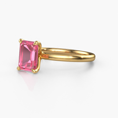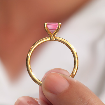 The ring shown above is called the Crystal EME 1, we call this a solitaire ring because it contains a single gemstone. The engagement ring is made in 14 Carat gold and has a emerald cut pink sapphire of 8x6 mm. The cool thing about our configurator is that you can compile your own piece of jewellery, into a completely personalized one. This solitaire ring is crafted in the precious metals gold with gold, but of course you are free to pick your own colours. Each piece of jewellery is made with passion and love by one of our master goldsmiths.The solitaire ring is a special type of engagement ring. Its open prong setting allows light to strike the gemstone from various angles. This classic engagement ring is a stunning eye-catcher because of the high positioning of the gemstone. In order for you to commemorate your proposal with a unique ring, we carefully adorn this solitaire ring by hand. The love of your life deserves nothing but the best. After receiving your order, our goldsmiths will passionately start the creative process of making your engagement ring in our own studio. Because we don't have a big stockpile, these costs will not be passed on to you. Our pricing is proof of that! We offer top quality jewels at lowest price, guaranteed.Our designers and goldsmiths work together each day, creating new jewels. Perhaps you have found a nice classic engagement ring somewhere, which can be used to customize your unique ring. Please feel free to contact us. We will make you an offer, based on a fair price/ quality ratio, which will amaze you.To make it easier for you, we offer a 30 day return policy. Check our terms and conditions.