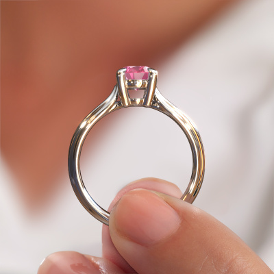 In your eyes, no one else compares to her. She is one in a million, unlike anyone else and pure? These qualities are emphasized perfectly by our contemporary platinum solitaire pink sapphire ring. This pink sapphire is carefully selected by our keen artisan goldsmiths. It equals the unique qualities of the love of your life. There is no better way to memorialize your proposal than this symbol of true love. The ring shown above is called the Antonia ovl 1, we call this a solitaire ring because it contains a single gemstone. The engagement ring is made in platinum and has a oval pink sapphire of 8x6 mm. Each piece of jewellery is made with passion and love by one of our master goldsmiths.After receiving your order, our goldsmiths will start the creative process of making your Antonia ovl 1 engagement ring. We don't keep stock. This is advantageous because these costs will not be passed on to you. Therefore, we can offer jewellery at exceptionally low prices.Our team adds new designs to our online collection daily. Our designers and goldsmiths work together in creating the best design. We strive to offer a diverse collection of jewels. Perhaps you have a specific jewel design in mind. One you came across somewhere. Please contact us for a free consultation. We will make you an offer, based on a fair price/ quality ratio, that will baffle you.To make it easier for you, we offer a 30 day return policy. Check our terms and conditions.