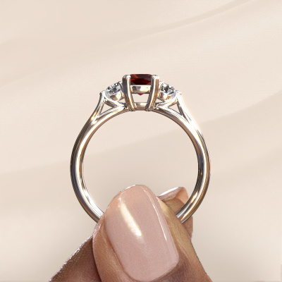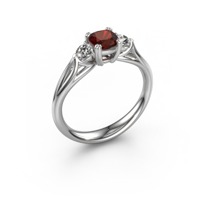 This platinum ring is called Amie cus and is set with 5 mm garnet. Does your girlfriend fancy exclusive jewellery? Or would you like to show her that she deserves the finest jewellery? This platinum ring is pure craftsmanship, love and passion combined with the latest techniques coming together in perfect harmony. It requires a keen eye, patience and a skilful hand to mould this ring into perfection. Just the job for our expert goldsmith! The garnet set gemstones gives this platinum ring an extra glamorous appearance. Customize the style of the ajour engagement ring to her liking with a wide variety of precious metals and gemstones which you select. That is how you create a unique ring for the most exclusive woman in your life! This jewel is made just for you, with attention to detail and design.After receiving your order, our goldsmiths will passionately start the creative process of making your engagement ring in our own studio. Because we don't have a big stockpile, these costs will not be passed on to you. Our pricing is proof of that! We offer top quality jewels at lowest price, guaranteed.Have you found a specific engagement ring somewhere which you would like to give to your loved one? Please feel free to express your wishes to our jewel designers because we would be honoured to turn your design into a fantasy engagement ring. You can follow the development of your ring design because we use 3D drawings. This gives you a realistic preview of how your design will look. You can also preorder a dummy. A dummy is a plastic ring, which can be shaped according your ring design. You can try it on and check if its width and size are suitable for you. We will gladly send you a non-binding offer, based on a fair price/ quality ratio. It will amaze you, considering the quality of the ring and gemstones.To make it easier for you, we offer a 30 day return policy. Check our terms and conditions.