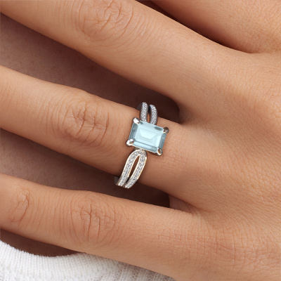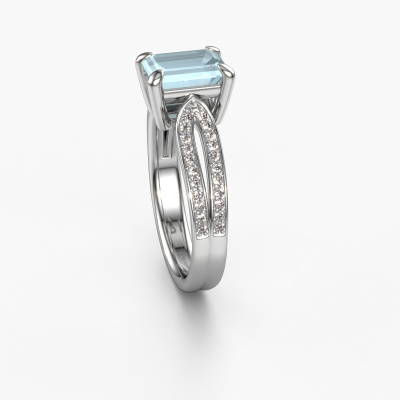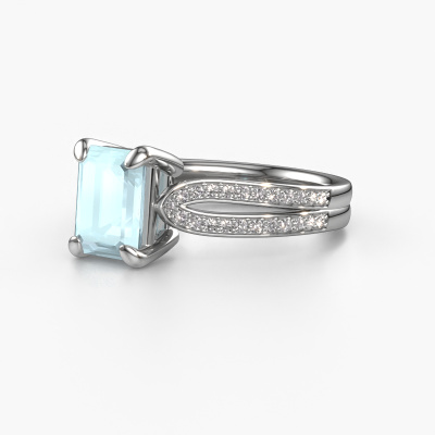 This platinum ring is called Antonia eme 2 and is set with 8x6 mm aquamarine. Does your girlfriend fancy exclusive jewellery? Or would you like to show her that she deserves the finest jewellery? This platinum ring is pure craftsmanship, love and passion combined with the latest techniques coming together in perfect harmony. It requires a keen eye, patience and a skilful hand to mould this ring into perfection. Just the job for our expert goldsmith! The aquamarine set gemstones gives this platinum ring an extra glamorous appearance. Customize the style of the split band engagement ring to her liking with a wide variety of precious metals and gemstones which you select. That is how you create a unique ring for the most exclusive woman in your life! This jewel is made to shine bright around your finger. Each jewel is hand made with love by our goldsmiths.After receiving your order, our goldsmiths will start the creative process of making your Antonia eme 2 engagement ring. We don't keep stock. This is advantageous because these costs will not be passed on to you. Therefore, we can offer jewellery at exceptionally low prices.Do you have a specific ring in mind? One you came across somewhere. Please feel free to tell us your wishes and we will turn your design into a unique engagement ring. You can follow the development of your ring design because we use 3D drawings. This gives you a realistic preview of your design. We will gladly send you a non-binding offer, based on a fair price/ quality ratio. It will amaze you.To make it easier for you, we offer a 30 day return policy. Check our terms and conditions.