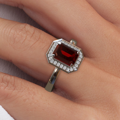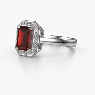 This platinum ring is called Dodie 1 eme and is set with 8x6 mm garnet. Does your girlfriend fancy exclusive jewellery? Or would you like to show her that she deserves the finest jewellery? This platinum ring is pure craftsmanship, love and passion combined with the latest techniques coming together in perfect harmony. It requires a keen eye, patience and a skilful hand to mould this ring into perfection. Just the job for our expert goldsmith! The garnet set gemstones gives this platinum ring an extra glamorous appearance. Customize the style of the special engagement ring to her liking with a wide variety of precious metals and gemstones which you select. That is how you create a unique ring for the most exclusive woman in your life! This jewel is made to shine bright around your finger. Each jewel is hand made with love by our goldsmiths.After receiving your order, our goldsmiths will start the creative process of making your Dodie 1 eme engagement ring. We don't keep stock. This is advantageous because these costs will not be passed on to you. Therefore, we can offer jewellery at exceptionally low prices.Our team adds new designs to our online collection daily. Our designers and goldsmiths work together in creating the best design. We strive to offer a diverse collection of jewels. Perhaps you have a specific jewel design in mind. One you came across somewhere. Please contact us for a free consultation. We will make you an offer, based on a fair price/ quality ratio, that will baffle you.To make it easier for you, we offer a 30 day return policy. Check our terms and conditions.