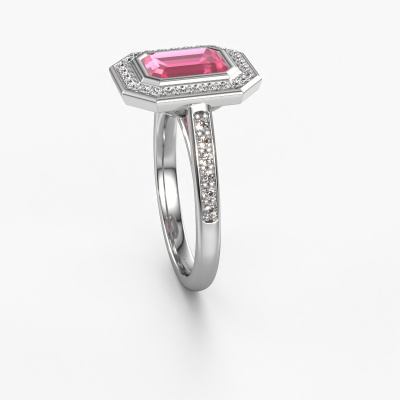 This platinum ring is called Noud 2 EME and is set with 8x6 mm pink sapphire. Does your girlfriend fancy exclusive jewellery? Or would you like to show her that she deserves the finest jewellery? This platinum ring is pure craftsmanship, love and passion combined with the latest techniques coming together in perfect harmony. It requires a keen eye, patience and a skilful hand to mould this ring into perfection. Just the job for our expert goldsmith! The pink sapphire set gemstones gives this platinum ring an extra glamorous appearance. Customize the style of the pavé engagement ring to her liking with a wide variety of precious metals and gemstones which you select. That is how you create a unique ring for the most exclusive woman in your life! This jewel is created to add sparkle to your finger, each jewel is lovingly made by hand by our goldsmiths.After receiving your order, our goldsmiths will start the creative process of making your Noud 2 EME engagement ring. We don't keep stock. This is advantageous because these costs will not be passed on to you. Therefore, we can offer jewellery at exceptionally low prices.Have you found a specific engagement ring somewhere which you would like to give to your loved one? Please feel free to express your wishes to our jewel designers because we would be honoured to turn your design into a exclusive engagement ring. You can follow the development of your ring design because we use 3D drawings. This gives you a realistic preview of how your design will look. You can also preorder a dummy. A dummy is a plastic ring, which can be shaped according your ring design. You can try it on and check if its width and size are suitable for you. We will gladly send you a non-binding offer, based on a fair price/ quality ratio. It will amaze you, considering the quality of the ring and gemstones.To make it easier for you, we offer a 30 day return policy. Check our terms and conditions.