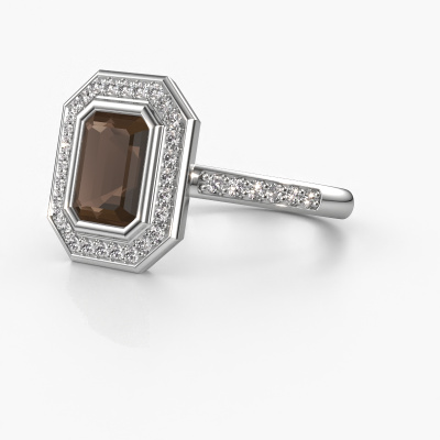 This platinum ring is called Noud 2 EME and is set with 8x6 mm smokey quartz. Does your girlfriend fancy exclusive jewellery? Or would you like to show her that she deserves the finest jewellery? This platinum ring is pure craftsmanship, love and passion combined with the latest techniques coming together in perfect harmony. It requires a keen eye, patience and a skilful hand to mould this ring into perfection. Just the job for our expert goldsmith! The smokey quartz set gemstones gives this platinum ring an extra glamorous appearance. Customize the style of the pavé engagement ring to her liking with a wide variety of precious metals and gemstones which you select. That is how you create a unique ring for the most exclusive woman in your life! This jewel is created to add sparkle to your finger, each jewel is lovingly made by hand by our goldsmiths.After receiving your order, our goldsmiths will start the creative process of making your Noud 2 EME engagement ring. We don't keep stock. This is advantageous because these costs will not be passed on to you. Therefore, we can offer jewellery at exceptionally low prices.Have you found a specific engagement ring somewhere which you would like to give to your loved one? Please feel free to express your wishes to our jewel designers because we would be honoured to turn your design into a exclusive engagement ring. You can follow the development of your ring design because we use 3D drawings. This gives you a realistic preview of how your design will look. You can also preorder a dummy. A dummy is a plastic ring, which can be shaped according your ring design. You can try it on and check if its width and size are suitable for you. We will gladly send you a non-binding offer, based on a fair price/ quality ratio. It will amaze you, considering the quality of the ring and gemstones.To make it easier for you, we offer a 30 day return policy. Check our terms and conditions.