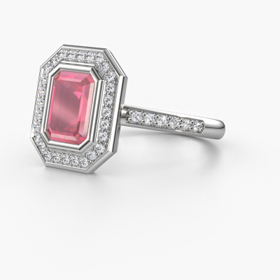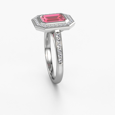 This platinum ring is called Noud 2 EME and is set with 8x6 mm tourmaline pink. Does your girlfriend fancy exclusive jewellery? Or would you like to show her that she deserves the finest jewellery? This platinum ring is pure craftsmanship, love and passion combined with the latest techniques coming together in perfect harmony. It requires a keen eye, patience and a skilful hand to mould this ring into perfection. Just the job for our expert goldsmith! The tourmaline pink set gemstones gives this platinum ring an extra glamorous appearance. Customize the style of the pavé engagement ring to her liking with a wide variety of precious metals and gemstones which you select. That is how you create a unique ring for the most exclusive woman in your life! This jewel is created to add sparkle to your finger, each jewel is lovingly made by hand by our goldsmiths.After receiving your order, our goldsmiths will start the creative process of making your Noud 2 EME engagement ring. We don't keep stock. This is advantageous because these costs will not be passed on to you. Therefore, we can offer jewellery at exceptionally low prices.Have you found a specific engagement ring somewhere which you would like to give to your loved one? Please feel free to express your wishes to our jewel designers because we would be honoured to turn your design into a exclusive engagement ring. You can follow the development of your ring design because we use 3D drawings. This gives you a realistic preview of how your design will look. You can also preorder a dummy. A dummy is a plastic ring, which can be shaped according your ring design. You can try it on and check if its width and size are suitable for you. We will gladly send you a non-binding offer, based on a fair price/ quality ratio. It will amaze you, considering the quality of the ring and gemstones.To make it easier for you, we offer a 30 day return policy. Check our terms and conditions.