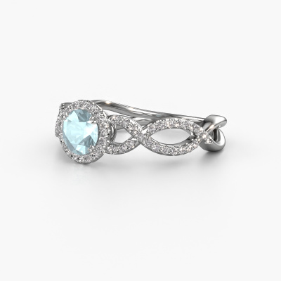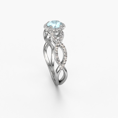 The ring shown above is called the Dionne rnd. We call this type of ring a pavé solitaire ring because it has one centre gemstone and a band that is also pave set with gemstones. The platinum engagement ring is set with a round 5 mm aquamarine centre stone and the band is pave set with diamond gemstones. Each jewel is made just for you by our master goldsmiths in our own studio.This classic platinum pavé solitaire engagement ring has an exquisite round aquamarine centre stone. To further accentuate the centre stone, the band is fully set with more diamonds. Its open prong setting allows light to strike the aquamarine from various angles and this adds sparkle to your aquamarine ring. The photo shown above depicts the goldsmith's carefully handcrafted details of the ring. The high positioning of the centre stone is truly eye-catching. The perfect engagement ring for the crown jewel of your life! Because we design and deliver our own rings, we can offer you a engagement ring at a price you won't find anywhere else. A ring is made to order, which helps prevent excess supplies, so we can make you a great price offer. We understand it feels risky, buying your engagement ring online, but we will gladly assist in the designing process, taking your budget into consideration.Do you have a specific ring in mind? One you came across somewhere. Please feel free to tell us your wishes and we will turn your design into a unique engagement ring. You can follow the development of your ring design because we use 3D drawings. This gives you a realistic preview of your design. We will gladly send you a non-binding offer, based on a fair price/ quality ratio. It will amaze you.To make it easier for you, we offer a 30 day return policy. Check our terms and conditions.