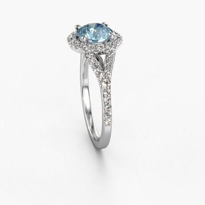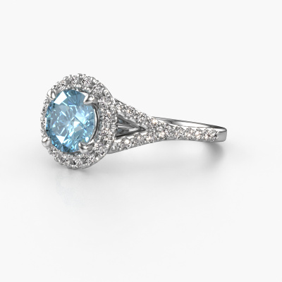 The ring shown above is called the Kimber RND. We call this type of ring a pavé solitaire ring because it has one centre gemstone and a band that is also pave set with gemstones. The platinum engagement ring is set with a round 7 mm blue lab grown diamond centre stone and the band is pave set with lab grown diamond gemstones. Each jewel is created to add sparkle to your finger, each jewel is lovingly made by hand by our goldsmiths.This classic platinum pavé solitaire engagement ring has an exquisite round blue lab grown diamond centre stone. To further accentuate the centre stone, the band is fully set with more lab-grown diamonds. Its open prong setting allows light to strike the blue lab grown diamond from various angles and this adds sparkle to your blue lab grown diamond ring. The photo shown above depicts the goldsmith's carefully handcrafted details of the ring. The high positioning of the centre stone is truly eye-catching. The perfect engagement ring for the crown jewel of your life! After receiving your order, our goldsmiths will passionately start the creative process of making your engagement ring in our own studio. Because we don't have a big stockpile, these costs will not be passed on to you. Our pricing is proof of that! We offer top quality jewels at lowest price, guaranteed.Our team adds new designs to our online collection daily. Our designers and goldsmiths work together in creating the best design. We strive to offer a diverse collection of jewels. Perhaps you have a specific jewel design in mind. One you came across somewhere. Please contact us for a free consultation. We will make you an offer, based on a fair price/ quality ratio, that will baffle you.To make it easier for you, we offer a 30 day return policy. Check our terms and conditions.