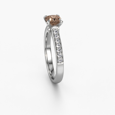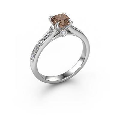 The ring shown above is called the Valorie cus 2. We call this type of ring a pavé solitaire ring because it has one centre gemstone and a band that is also pave set with gemstones. The platinum engagement ring is set with a cushion 1.00 crt brown diamond centre stone and the band is pave set with diamond gemstones. Each jewel is made just for you by our master goldsmiths in our own studio.This traditional platinum pavé solitaire engagement ring has an exquisite cushion brown diamond centre stone. To further accentuate the centre stone, the band is fully set with more diamonds. Its open prong setting allows light to strike the brown diamond from various angles and this adds sparkle to your brown diamond ring. The photo shown above depicts the goldsmith's carefully handcrafted details of the ring. The high positioning of the centre stone is truly eye-catching. The perfect engagement ring for the crown jewel of your life! By using a combination of the latest modern techniques, combined with ancient crafting, we can make all our engagement rings in our own studio. Each jewel is made to order. This is advantageous because we can offer you a price you won't find anywhere else.Our designers and goldsmiths work together each day, creating new jewels. Perhaps you have found a nice traditional engagement ring somewhere, which can be used to customize your unique ring. Please feel free to contact us. We will make you an offer, based on a fair price/ quality ratio, which will amaze you.To make it easier for you, we offer a 30 day return policy. Check our terms and conditions.