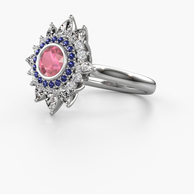 This platinum ring is called Tianna and is set with tourmaline pink. An extraordinary platinum vintage ring. One that will surely make the love of your life shine like a diamond! That is what we hope to achieve. This vintage engagement ring is set with exquisite tourmaline pink. Whichever gemstone you choose from our selection, is up to you. The gemstone is selected with great care because we believe your engagement ring must be adorned with nothing but the most beautiful gemstone. Wouldn't you agree? Our expert goldsmith will design your ring in our own artisan studio, where the tourmaline pink will be set with great precision. The ring will then be polished till it is absolutely perfect. Nothing but the best for the love of your life! This jewel is made just for you by our master goldsmiths in our own studio.Because we design and deliver our own rings, we can offer you a engagement ring at a price you won't find anywhere else. A ring is made to order, which helps prevent excess supplies, so we can make you a great price offer. We understand it feels risky, buying your engagement ring online, but we will gladly assist in the designing process, taking your budget into consideration.Our team adds new designs to our online collection daily. Our designers and goldsmiths work together in creating the best design. We strive to offer a diverse collection of jewels. Perhaps you have a specific jewel design in mind. One you came across somewhere. Please contact us for a free consultation. We will make you an offer, based on a fair price/ quality ratio, that will baffle you.To make it easier for you, we offer a 30 day return policy. Check our terms and conditions.
