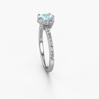 This platinum ring is called Saskia 1 ovl and is set with 7x5 mm aquamarine. Does your girlfriend fancy exclusive jewellery? Or would you like to show her that she deserves the finest jewellery? This platinum ring is pure craftsmanship, love and passion combined with the latest techniques coming together in perfect harmony. It requires a keen eye, patience and a skilful hand to mould this ring into perfection. Just the job for our expert goldsmith! The aquamarine set gemstones gives this platinum ring an extra glamorous appearance. Customize the style of the daring engagement ring to her liking with a wide variety of precious metals and gemstones which you select. That is how you create a unique ring for the most exclusive woman in your life! This jewel is made by a team of passionate goldsmiths and jewel designers. This will make your crown jewel truly eye-catching.After receiving your order, our goldsmiths will passionately start the creative process of making your engagement ring in our own studio. Because we don't have a big stockpile, these costs will not be passed on to you. Our pricing is proof of that! We offer top quality jewels at lowest price, guaranteed.Different styles of new rings are made daily by our team. Perhaps you have found a pavé solitaire engagement ring somewhere. One you would like to give to your loved one. Please feel free to share your thoughts and design with our jewel designers. We would love to turn your design into a luxury engagement ring. You can follow the development of your ring design because we use very detailed 3D drawings. On top of that, you can order a dummy of the design. A dummy is a plastic ring, which can be shaped according your ring design. You can try it on and check if the engagement ring is up to standard. We will gladly send you a non-binding offer, based on a fair price/ quality ratio. The offer will baffle you, considering the quality of the ring and gemstones.To make it easier for you, we offer a 30 day return policy. Check our terms and conditions.