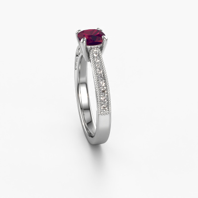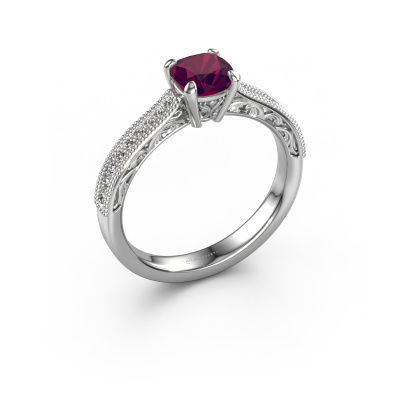 This platinum ring is called Shonta CUS and is set with 5.5 mm rhodolite. This filigree platinum engagement ring is a true work of art! A beautifully adorned design of intricate wires. With dedication, patience and the utmost precision, our expert goldsmith will design a ring just for you. The adornment of small wiring is crafted to perfection by hand. It's a lengthy process which includes welding, crafting and polishing until our Goldsmiths are completely satisfied with the result: a perfect eye-catching ring that makes her shine with delight. Therefore the vintage filigree engagement ring is an extraordinary gift to bestow upon the love of your life. A handmade one-of-a-kind personalized ring, to be given to that special someone on that special moment when you pop the question. Isn't that wonderful? This piece of jewellery is created to add sparkle to your finger, each jewel is lovingly made by hand by our goldsmiths.After receiving your order, our goldsmiths will start the creative process of making your Shonta CUS engagement ring. We don't keep stock. This is advantageous because these costs will not be passed on to you. Therefore, we can offer jewellery at exceptionally low prices.Our designers and goldsmiths work together each day, creating new jewels. Perhaps you have found a nice vintage engagement ring somewhere, which can be used to customize your unique ring. Please feel free to contact us. We will make you an offer, based on a fair price/ quality ratio, which will amaze you.To make it easier for you, we offer a 30 day return policy. Check our terms and conditions.