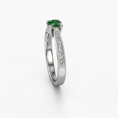 This platinum ring is called Shonta RND and is set with 4.7 mm emerald. This filigree platinum engagement ring is a true work of art! A beautifully adorned design of intricate wires. With dedication, patience and the utmost precision, our expert goldsmith will design a ring just for you. The adornment of small wiring is crafted to perfection by hand. It's a lengthy process which includes welding, crafting and polishing until our Goldsmiths are completely satisfied with the result: a perfect eye-catching ring that makes her shine with delight. Therefore the vintage filigree engagement ring is an extraordinary gift to bestow upon the love of your life. A handmade one-of-a-kind personalized ring, to be given to that special someone on that special moment when you pop the question. Isn't that wonderful? This piece of jewellery is made just for you by our master goldsmiths in our own studio.By using our modern techniques, we can design and customize the finest quality jewels with the utmost care for you. Our engagement rings are always priced 30 percent lower than other jewellers. We make engagement rings to order so we don't have to maintain a large stock. If you have a certain budget, we are more than happy to advice you accordingly.Our team adds new designs to our online collection daily. Our designers and goldsmiths work together in creating the best design. We strive to offer a diverse collection of jewels. Perhaps you have a specific jewel design in mind. One you came across somewhere. Please contact us for a free consultation. We will make you an offer, based on a fair price/ quality ratio, that will baffle you.To make it easier for you, we offer a 30 day return policy. Check our terms and conditions.
