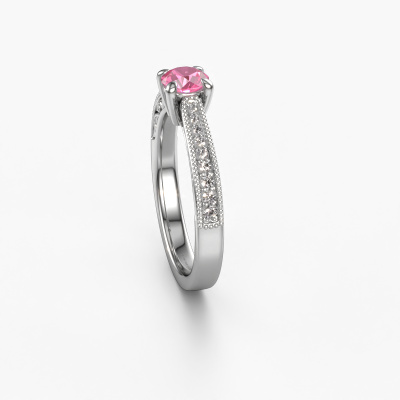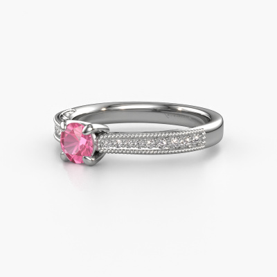 This platinum ring is called Shonta RND and is set with 4.7 mm pink sapphire. This filigree platinum engagement ring is a true work of art! A beautifully adorned design of intricate wires. With dedication, patience and the utmost precision, our expert goldsmith will design a ring just for you. The adornment of small wiring is crafted to perfection by hand. It's a lengthy process which includes welding, crafting and polishing until our Goldsmiths are completely satisfied with the result: a perfect eye-catching ring that makes her shine with delight. Therefore the vintage filigree engagement ring is an extraordinary gift to bestow upon the love of your life. A handmade one-of-a-kind personalized ring, to be given to that special someone on that special moment when you pop the question. Isn't that wonderful? This piece of jewellery is made just for you by our master goldsmiths in our own studio.By using our modern techniques, we can design and customize the finest quality jewels with the utmost care for you. Our engagement rings are always priced 30 percent lower than other jewellers. We make engagement rings to order so we don't have to maintain a large stock. If you have a certain budget, we are more than happy to advice you accordingly.Our team adds new designs to our online collection daily. Our designers and goldsmiths work together in creating the best design. We strive to offer a diverse collection of jewels. Perhaps you have a specific jewel design in mind. One you came across somewhere. Please contact us for a free consultation. We will make you an offer, based on a fair price/ quality ratio, that will baffle you.To make it easier for you, we offer a 30 day return policy. Check our terms and conditions.