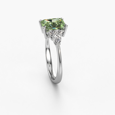 This platinum ring is called Melani RAD and is set with 8x6 mm green lab grown diamond. Does your girlfriend fancy exclusive jewellery? Or would you like to show her that she deserves the finest jewellery? This platinum ring is pure craftsmanship, love and passion combined with the latest techniques coming together in perfect harmony. It requires a keen eye, patience and a skilful hand to mould this ring into perfection. Just the job for our expert goldsmith! The green lab grown diamonds set gemstones gives this platinum ring an extra glamorous appearance. Customize the style of the stylish engagement ring to her liking with a wide variety of precious metals and gemstones which you select. That is how you create a unique ring for the most exclusive woman in your life! This jewel is unique in every way! Simply customize to your likingAfter receiving your order, our goldsmiths will start the creative process of making your Melani RAD engagement ring. We don't keep stock. This is advantageous because these costs will not be passed on to you. Therefore, we can offer jewellery at exceptionally low prices.Have you found a specific engagement ring somewhere which you would like to give to your loved one? Please feel free to express your wishes to our jewel designers because we would be honoured to turn your design into a fashionable engagement ring. You can follow the development of your ring design because we use 3D drawings. This gives you a realistic preview of how your design will look. You can also preorder a dummy. A dummy is a plastic ring, which can be shaped according your ring design. You can try it on and check if its width and size are suitable for you. We will gladly send you a non-binding offer, based on a fair price/ quality ratio. It will amaze you, considering the quality of the ring and gemstones.To make it easier for you, we offer a 30 day return policy. Check our terms and conditions.