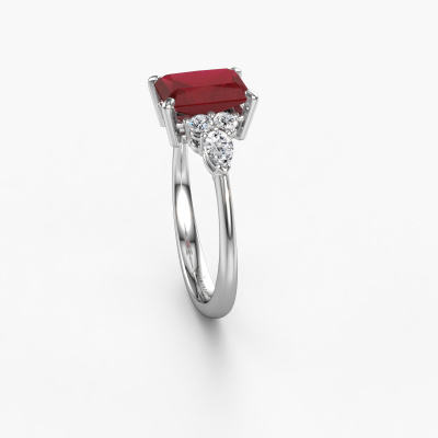 This platinum ring is called Melani RAD and is set with 8x6 mm ruby. Does your girlfriend fancy exclusive jewellery? Or would you like to show her that she deserves the finest jewellery? This platinum ring is pure craftsmanship, love and passion combined with the latest techniques coming together in perfect harmony. It requires a keen eye, patience and a skilful hand to mould this ring into perfection. Just the job for our expert goldsmith! The ruby set gemstones gives this platinum ring an extra glamorous appearance. Customize the style of the stylish engagement ring to her liking with a wide variety of precious metals and gemstones which you select. That is how you create a unique ring for the most exclusive woman in your life! This jewel is unique in every way! Simply customize to your likingAfter receiving your order, our goldsmiths will start the creative process of making your Melani RAD engagement ring. We don't keep stock. This is advantageous because these costs will not be passed on to you. Therefore, we can offer jewellery at exceptionally low prices.Have you found a specific engagement ring somewhere which you would like to give to your loved one? Please feel free to express your wishes to our jewel designers because we would be honoured to turn your design into a fashionable engagement ring. You can follow the development of your ring design because we use 3D drawings. This gives you a realistic preview of how your design will look. You can also preorder a dummy. A dummy is a plastic ring, which can be shaped according your ring design. You can try it on and check if its width and size are suitable for you. We will gladly send you a non-binding offer, based on a fair price/ quality ratio. It will amaze you, considering the quality of the ring and gemstones.To make it easier for you, we offer a 30 day return policy. Check our terms and conditions.