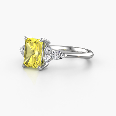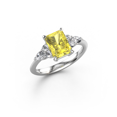 This platinum ring is called Melani RAD and is set with 8x6 mm yellow lab grown diamond. Does your girlfriend fancy exclusive jewellery? Or would you like to show her that she deserves the finest jewellery? This platinum ring is pure craftsmanship, love and passion combined with the latest techniques coming together in perfect harmony. It requires a keen eye, patience and a skilful hand to mould this ring into perfection. Just the job for our expert goldsmith! The yellow lab grown diamonds set gemstones gives this platinum ring an extra glamorous appearance. Customize the style of the stylish engagement ring to her liking with a wide variety of precious metals and gemstones which you select. That is how you create a unique ring for the most exclusive woman in your life! This jewel is unique in every way! Simply customize to your likingAfter receiving your order, our goldsmiths will start the creative process of making your Melani RAD engagement ring. We don't keep stock. This is advantageous because these costs will not be passed on to you. Therefore, we can offer jewellery at exceptionally low prices.Have you found a specific engagement ring somewhere which you would like to give to your loved one? Please feel free to express your wishes to our jewel designers because we would be honoured to turn your design into a fashionable engagement ring. You can follow the development of your ring design because we use 3D drawings. This gives you a realistic preview of how your design will look. You can also preorder a dummy. A dummy is a plastic ring, which can be shaped according your ring design. You can try it on and check if its width and size are suitable for you. We will gladly send you a non-binding offer, based on a fair price/ quality ratio. It will amaze you, considering the quality of the ring and gemstones.To make it easier for you, we offer a 30 day return policy. Check our terms and conditions.