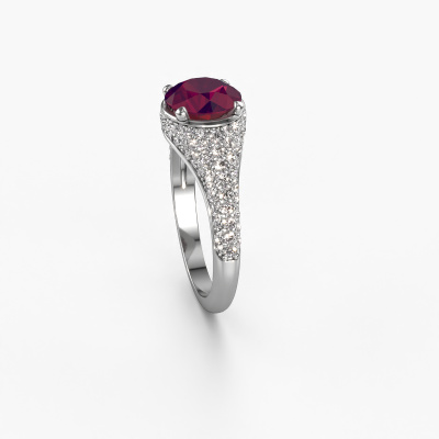 This platinum ring is called Lovella and is set with 7 mm rhodolite. Does your girlfriend fancy exclusive jewellery? Or would you like to show her that she deserves the finest jewellery? This platinum ring is pure craftsmanship, love and passion combined with the latest techniques coming together in perfect harmony. It requires a keen eye, patience and a skilful hand to mould this ring into perfection. Just the job for our expert goldsmith! The rhodolite set gemstones gives this platinum ring an extra glamorous appearance. Customize the style of the micro pave engagement ring to her liking with a wide variety of precious metals and gemstones which you select. That is how you create a unique ring for the most exclusive woman in your life! This jewel is made just for you, with attention to detail and design.By using a combination of the latest modern techniques, combined with ancient crafting, we can make all our engagement rings in our own studio. Each jewel is made to order. This is advantageous because we can offer you a price you won't find anywhere else.Our team adds new designs to our online collection daily. Our designers and goldsmiths work together in creating the best design. We strive to offer a diverse collection of jewels. Perhaps you have a specific jewel design in mind. One you came across somewhere. Please contact us for a free consultation. We will make you an offer, based on a fair price/ quality ratio, that will baffle you.To make it easier for you, we offer a 30 day return policy. Check our terms and conditions.