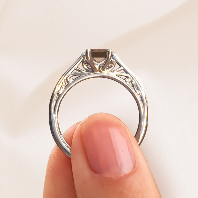 This platinum ring is called Shannon eme and is set with brown diamond. An extraordinary platinum vintage ring. One that will surely make the love of your life shine like a diamond! That is what we hope to achieve. This fantasy engagement ring is set with exquisite brown diamonds. Whichever gemstone you choose from our selection, is up to you. The gemstone is selected with great care because we believe your engagement ring must be adorned with nothing but the most beautiful gemstone. Wouldn't you agree? Our expert goldsmith will design your ring in our own artisan studio, where the brown diamond will be set with great precision. The ring will then be polished till it is absolutely perfect. Nothing but the best for the love of your life! This jewel is unique in every way! Simply customize to your liking,Are you on a budget? Please feel free to contact us, so we can go discuss your options. We offer our engagement rings at guaranteed best price, because we make them to order. You won't find such a price anywhere else!Our designers and goldsmiths work together each day, creating new jewels. Perhaps you have found a nice fantasy engagement ring somewhere, which can be used to customize your unique ring. Please feel free to contact us. We will make you an offer, based on a fair price/ quality ratio, which will amaze you.To make it easier for you, we offer a 30 day return policy. Check our terms and conditions.