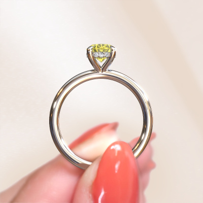 This platinum ring is called Simone OVL 2 and is set with yellow lab grown diamond. Are you in the market for a unique platinum engagement ring with a trendy appearance? Then this ring is perfect for you. Simply customize to your or her liking. This contemporary graceful engagement ring is set with exquisite yellow lab grown diamond. It has been carefully selected because your engagement ring must be adorned with nothing but the most beautiful gemstone. Our expert goldsmith will create your ring in our own studio where the yellow lab grown diamond will be set with great care. The ring will then be polished to perfection to give it that extra sparkle. The perfect ring for your significant other! Because we design and deliver our own rings, we can offer you a engagement ring at a price you won't find anywhere else. A ring is made to order, which helps prevent excess supplies, so we can make you a great price offer. We understand it feels risky, buying your engagement ring online, but we will gladly assist in the designing process, taking your budget into consideration.Do you have a specific ring in mind? One you came across somewhere. Please feel free to tell us your wishes and we will turn your design into a unique engagement ring. You can follow the development of your ring design because we use 3D drawings. This gives you a realistic preview of your design. We will gladly send you a non-binding offer, based on a fair price/ quality ratio. It will amaze you.To make it easier for you, we offer a 30 day return policy. Check our terms and conditions.