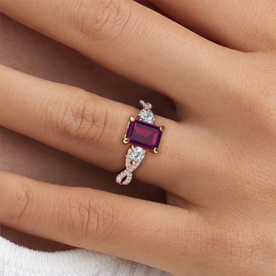 This 14 Carat rose gold ring is called Marilou EME and is set with rhodolite. How would you describe the style of the love of your life? Does she have a unique sense of style? This stunning split band rose gold engagement ring can be custom-made to your own or her liking. Our rhodolite gemstones have been carefully selected because we believe your luxury engagement ring must be adorned with nothing but the most beautiful gemstone. Don't you agree? This jewel is made to shine bright around your finger. Each jewel is hand made with love by our goldsmiths.After receiving your order, our goldsmiths will start the creative process of making your Marilou EME engagement ring. We don't keep stock. This is advantageous because these costs will not be passed on to you. Therefore, we can offer jewellery at exceptionally low prices.Do you have a specific ring in mind? One you came across somewhere. Please feel free to tell us your wishes and we will turn your design into a unique engagement ring. You can follow the development of your ring design because we use 3D drawings. This gives you a realistic preview of your design. We will gladly send you a non-binding offer, based on a fair price/ quality ratio. It will amaze you.To make it easier for you, we offer a 30 day return policy. Check our terms and conditions.