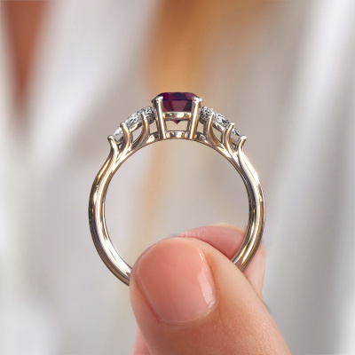 This platinum ring is called Fiona OVL and is set with rhodolite. How would you describe the style of the love of your life? Does she have a unique sense of style? This stunning beautiful platinum engagement ring can be custom-made to your own or her liking. Our rhodolite gemstones have been carefully selected because we believe your unique engagement ring must be adorned with nothing but the most beautiful gemstone. Don't you agree? This jewel is made just for you, with attention to detail and design.By using a combination of the latest modern techniques, combined with ancient crafting, we can make all our engagement rings in our own studio. Each jewel is made to order. This is advantageous because we can offer you a price you won't find anywhere else.Our designers and goldsmiths work together each day, creating new jewels. Perhaps you have found a nice unique engagement ring somewhere, which can be used to customize your unique ring. Please feel free to contact us. We will make you an offer, based on a fair price/ quality ratio, which will amaze you.To make it easier for you, we offer a 30 day return policy. Check our terms and conditions.