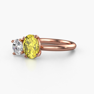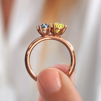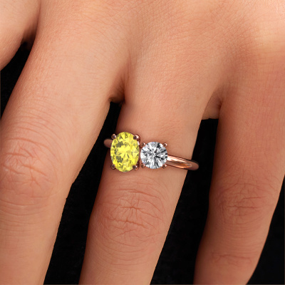 This 14 Carat rose gold ring is called Toi et Moi OVL-RND and is set with yellow lab grown diamond. Are you in the market for a unique rose gold engagement ring with a trendy appearance? Then this ring is perfect for you. Simply customize to your or