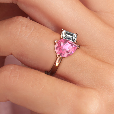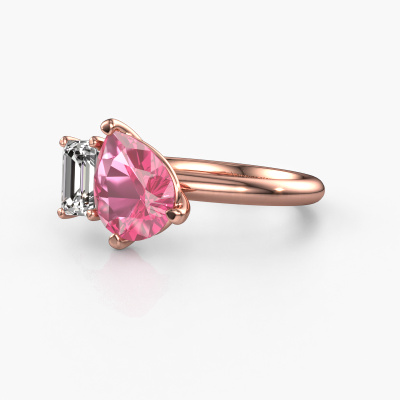 This 14 Carat rose gold ring is called Toi et Moi PER-EME and is set with pink sapphire. Are you in the market for a unique rose gold engagement ring with a trendy appearance? Then this ring is perfect for you. Simply customize to your or her liking. This chic sparkling engagement ring is set with exquisite pink sapphire. It has been carefully selected because your engagement ring must be adorned with nothing but the most beautiful gemstone. Our expert goldsmith will create your ring in our own studio where the pink sapphire will be set with great care. The ring will then be polished to perfection to give it that extra sparkle. The perfect ring for your significant other! By using a combination of the latest modern techniques, combined with ancient crafting, we can make all our engagement rings in our own studio. Each jewel is made to order. This is advantageous because we can offer you a price you won't find anywhere else.Our team adds new designs to our online collection daily. Our designers and goldsmiths work together in creating the best design. We strive to offer a diverse collection of jewels. Perhaps you have a specific jewel design in mind. One you came across somewhere. Please contact us for a free consultation. We will make you an offer, based on a fair price/ quality ratio, that will baffle you.To make it easier for you, we offer a 30 day return policy. Check our terms and conditions.