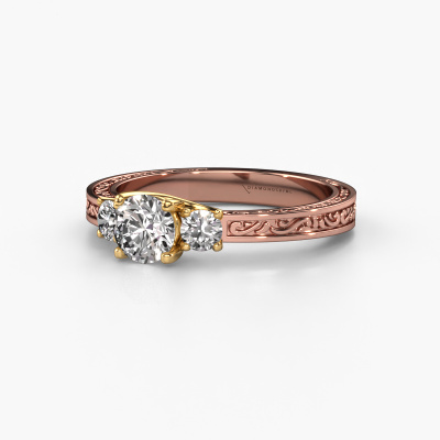 This 14 Carat rose gold ring is called Betty 1 and is set with diamond. An extraordinary rose gold vintage ring. One that will surely make the love of your life shine like a diamond! That is what we hope to achieve. This Celtic engagement ring is set with exquisite diamonds. Whichever gemstone you choose from our selection, is up to you. The gemstone is selected with great care because we believe your engagement ring must be adorned with nothing but the most beautiful gemstone. Wouldn't you agree? Our expert goldsmith will design your ring in our own artisan studio, where the diamond will be set with great precision. The ring will then be polished till it is absolutely perfect. Nothing but the best for the love of your life! This jewel is created to add sparkle to your finger, each jewel is lovingly made by hand by our goldsmiths.Are you on a budget? Please feel free to contact us, so we can go discuss your options. We offer our engagement rings at guaranteed best price, because we make them to order. You won't find such a price anywhere else!Our team adds new designs to our online collection daily. Our designers and goldsmiths work together in creating the best design. We strive to offer a diverse collection of jewels. Perhaps you have a specific jewel design in mind. One you came across somewhere. Please contact us for a free consultation. We will make you an offer, based on a fair price/ quality ratio, that will baffle you.To make it easier for you, we offer a 30 day return policy. Check our terms and conditions.