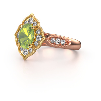 This 14 Carat rose gold ring is called Rosan and is set with peridot. An extraordinary rose gold vintage ring. One that will surely make the love of your life shine like a diamond! That is what we hope to achieve. This vintage engagement ring is set with exquisite peridot. Whichever gemstone you choose from our selection, is up to you. The gemstone is selected with great care because we believe your engagement ring must be adorned with nothing but the most beautiful gemstone. Wouldn't you agree? Our expert goldsmith will design your ring in our own artisan studio, where the peridot will be set with great precision. The ring will then be polished till it is absolutely perfect. Nothing but the best for the love of your life! This jewel is made just for you by our master goldsmiths in our own studio.After receiving your order, our goldsmiths will passionately start the creative process of making your engagement ring in our own studio. Because we don't have a big stockpile, these costs will not be passed on to you. Our pricing is proof of that! We offer top quality jewels at lowest price, guaranteed.Our team adds new designs to our online collection daily. Our designers and goldsmiths work together in creating the best design. We strive to offer a diverse collection of jewels. Perhaps you have a specific jewel design in mind. One you came across somewhere. Please contact us for a free consultation. We will make you an offer, based on a fair price/ quality ratio, that will baffle you.To make it easier for you, we offer a 30 day return policy. Check our terms and conditions.