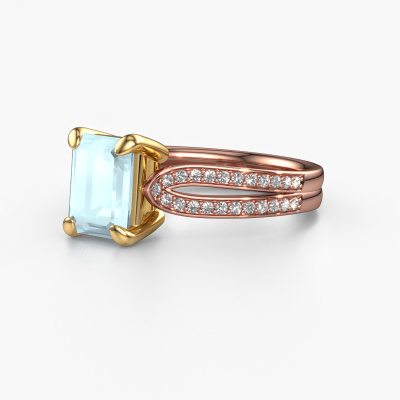 This 14 Carat rose gold ring is called Antonia eme 2 and is set with 8x6 mm aquamarine. Does your girlfriend fancy exclusive jewellery? Or would you like to show her that she deserves the finest jewellery? This rose gold ring is pure craftsmanship, love and passion combined with the latest techniques coming together in perfect harmony. It requires a keen eye, patience and a skilful hand to mould this ring into perfection. Just the job for our expert goldsmith! The aquamarine set gemstones gives this rose gold ring an extra glamorous appearance. Customize the style of the split band engagement ring to her liking with a wide variety of precious metals and gemstones which you select. That is how you create a unique ring for the most exclusive woman in your life! This jewel is made to shine bright around your finger. Each jewel is hand made with love by our goldsmiths.After receiving your order, our goldsmiths will start the creative process of making your Antonia eme 2 engagement ring. We don't keep stock. This is advantageous because these costs will not be passed on to you. Therefore, we can offer jewellery at exceptionally low prices.Do you have a specific ring in mind? One you came across somewhere. Please feel free to tell us your wishes and we will turn your design into a unique engagement ring. You can follow the development of your ring design because we use 3D drawings. This gives you a realistic preview of your design. We will gladly send you a non-binding offer, based on a fair price/ quality ratio. It will amaze you.To make it easier for you, we offer a 30 day return policy. Check our terms and conditions.