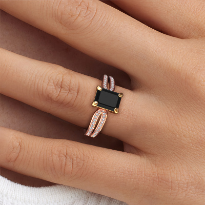 This 14 Carat rose gold ring is called Antonia eme 2 and is set with 2.33 crt black diamond. Does your girlfriend fancy exclusive jewellery? Or would you like to show her that she deserves the finest jewellery? This rose gold ring is pure craftsmanship, love and passion combined with the latest techniques coming together in perfect harmony. It requires a keen eye, patience and a skilful hand to mould this ring into perfection. Just the job for our expert goldsmith! The black diamonds set gemstones gives this rose gold ring an extra glamorous appearance. Customize the style of the split band engagement ring to her liking with a wide variety of precious metals and gemstones which you select. That is how you create a unique ring for the most exclusive woman in your life! This jewel is made to shine bright around your finger. Each jewel is hand made with love by our goldsmiths.After receiving your order, our goldsmiths will start the creative process of making your Antonia eme 2 engagement ring. We don't keep stock. This is advantageous because these costs will not be passed on to you. Therefore, we can offer jewellery at exceptionally low prices.Do you have a specific ring in mind? One you came across somewhere. Please feel free to tell us your wishes and we will turn your design into a unique engagement ring. You can follow the development of your ring design because we use 3D drawings. This gives you a realistic preview of your design. We will gladly send you a non-binding offer, based on a fair price/ quality ratio. It will amaze you.To make it easier for you, we offer a 30 day return policy. Check our terms and conditions.