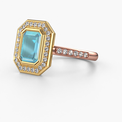 This 14 Carat rose gold ring is called Noud 2 EME and is set with 8x6 mm blue topaz. Does your girlfriend fancy exclusive jewellery? Or would you like to show her that she deserves the finest jewellery? This rose gold ring is pure craftsmanship, love and passion combined with the latest techniques coming together in perfect harmony. It requires a keen eye, patience and a skilful hand to mould this ring into perfection. Just the job for our expert goldsmith! The blue topaz set gemstones gives this rose gold ring an extra glamorous appearance. Customize the style of the pavé engagement ring to her liking with a wide variety of precious metals and gemstones which you select. That is how you create a unique ring for the most exclusive woman in your life! This jewel is created to add sparkle to your finger, each jewel is lovingly made by hand by our goldsmiths.After receiving your order, our goldsmiths will start the creative process of making your Noud 2 EME engagement ring. We don't keep stock. This is advantageous because these costs will not be passed on to you. Therefore, we can offer jewellery at exceptionally low prices.Have you found a specific engagement ring somewhere which you would like to give to your loved one? Please feel free to express your wishes to our jewel designers because we would be honoured to turn your design into a exclusive engagement ring. You can follow the development of your ring design because we use 3D drawings. This gives you a realistic preview of how your design will look. You can also preorder a dummy. A dummy is a plastic ring, which can be shaped according your ring design. You can try it on and check if its width and size are suitable for you. We will gladly send you a non-binding offer, based on a fair price/ quality ratio. It will amaze you, considering the quality of the ring and gemstones.To make it easier for you, we offer a 30 day return policy. Check our terms and conditions.