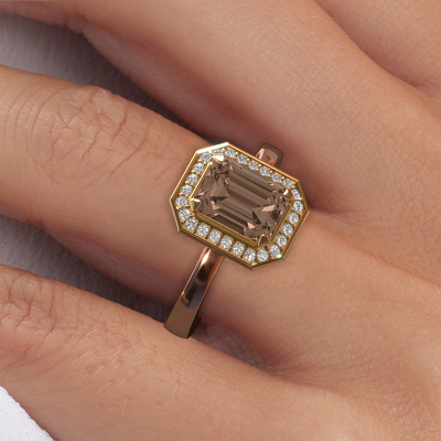 This 14 Carat rose gold ring is called Dodie 1 eme and is set with 1.88 crt brown diamond. Does your girlfriend fancy exclusive jewellery? Or would you like to show her that she deserves the finest jewellery? This rose gold ring is pure craftsmanship, love and passion combined with the latest techniques coming together in perfect harmony. It requires a keen eye, patience and a skilful hand to mould this ring into perfection. Just the job for our expert goldsmith! The brown diamonds set gemstones gives this rose gold ring an extra glamorous appearance. Customize the style of the special engagement ring to her liking with a wide variety of precious metals and gemstones which you select. That is how you create a unique ring for the most exclusive woman in your life! This jewel is made to shine bright around your finger. Each jewel is hand made with love by our goldsmiths.After receiving your order, our goldsmiths will start the creative process of making your Dodie 1 eme engagement ring. We don't keep stock. This is advantageous because these costs will not be passed on to you. Therefore, we can offer jewellery at exceptionally low prices.Our team adds new designs to our online collection daily. Our designers and goldsmiths work together in creating the best design. We strive to offer a diverse collection of jewels. Perhaps you have a specific jewel design in mind. One you came across somewhere. Please contact us for a free consultation. We will make you an offer, based on a fair price/ quality ratio, that will baffle you.To make it easier for you, we offer a 30 day return policy. Check our terms and conditions.
