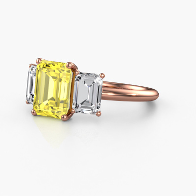 This 14 Carat rose gold ring is called Sandra and is set with 9x7 mm yellow lab grown diamond. Does your girlfriend fancy exclusive jewellery? Or would you like to show her that she deserves the finest jewellery? This rose gold ring is pure craftsmanship, love and passion combined with the latest techniques coming together in perfect harmony. It requires a keen eye, patience and a skilful hand to mould this ring into perfection. Just the job for our expert goldsmith! The yellow lab grown diamonds set gemstones gives this rose gold ring an extra glamorous appearance. Customize the style of the special engagement ring to her liking with a wide variety of precious metals and gemstones which you select. That is how you create a unique ring for the most exclusive woman in your life! This jewel is made just for you by our master goldsmiths in our own studio.Because we design and deliver our own rings, we can offer you a engagement ring at a price you won't find anywhere else. A ring is made to order, which helps prevent excess supplies, so we can make you a great price offer. We understand it feels risky, buying your engagement ring online, but we will gladly assist in the designing process, taking your budget into consideration.Different styles of new rings are made daily by our team. Perhaps you have found a 3-stone engagement ring somewhere. One you would like to give to your loved one. Please feel free to share your thoughts and design with our jewel designers. We would love to turn your design into a exclusive engagement ring. You can follow the development of your ring design because we use very detailed 3D drawings. On top of that, you can order a dummy of the design. A dummy is a plastic ring, which can be shaped according your ring design. You can try it on and check if the engagement ring is up to standard. We will gladly send you a non-binding offer, based on a fair price/ quality ratio. The offer will baffle you, considering the quality of the ring and gemstones.To make it easier for you, we offer a 30 day return policy. Check our terms and conditions.